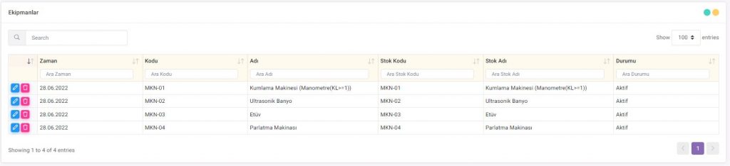 Üretim esnasında kullanılan ekipmanların tanımlandığı alandır. Ana üretim tezgahlarından farklı olarak önemli bir aşamalarda kullanılmaktadırlar. Ayrıca belirli periyotlarda bakımları ve kalibrasyonları yapıldığından bu cihazlar için ayrı bir alan ayrılmıştır.